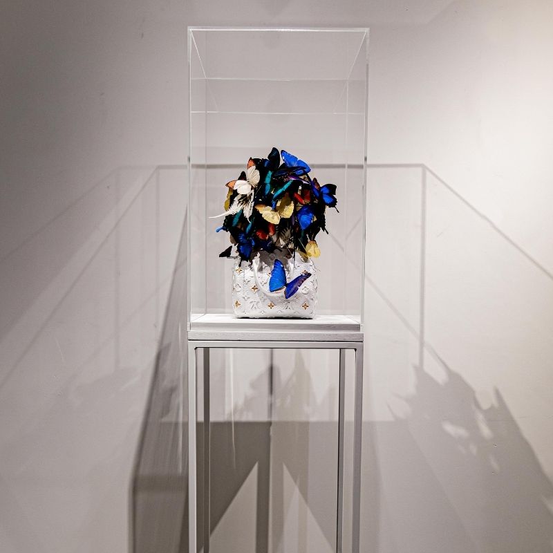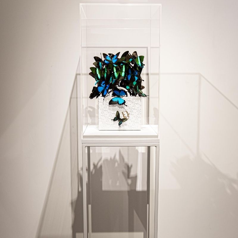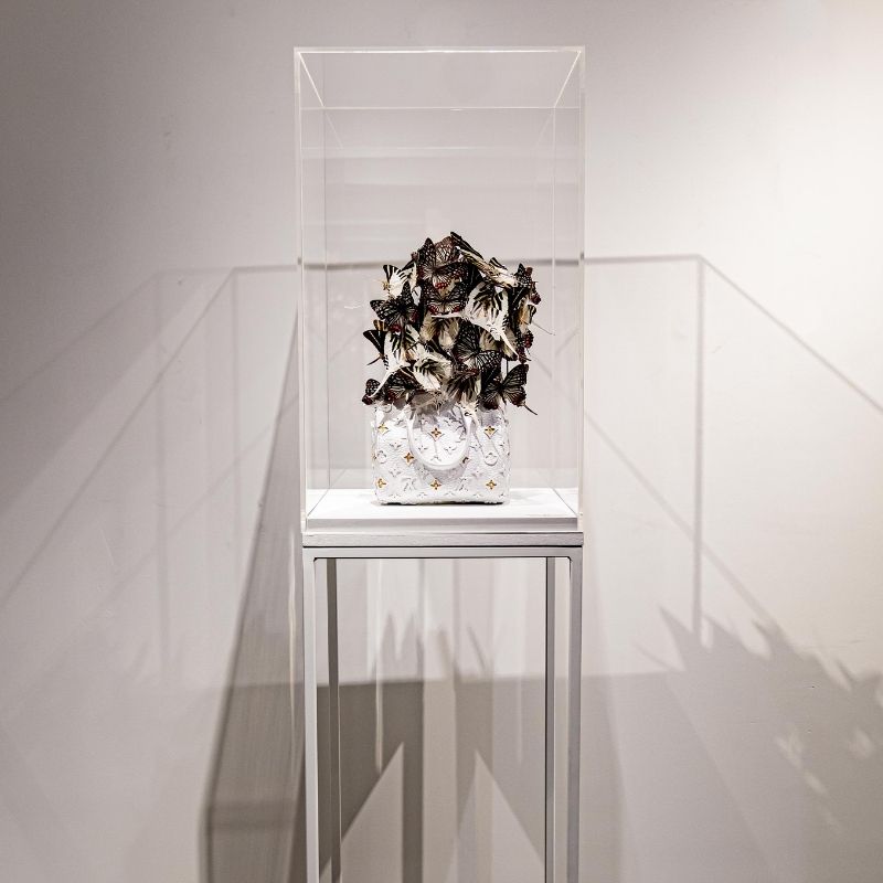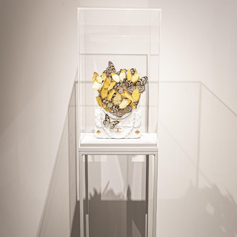 Carolien’s liefde voor fashion smelt samen met haar passie voor taxidermie in deze kunstwerken gemaakt met afgietsels van designer handtassen. The delicate pracht van vlinders versus de haute couture industrie. Je zou denken dat deze twee dingen niet verder uit elkaar kunnen liggen.