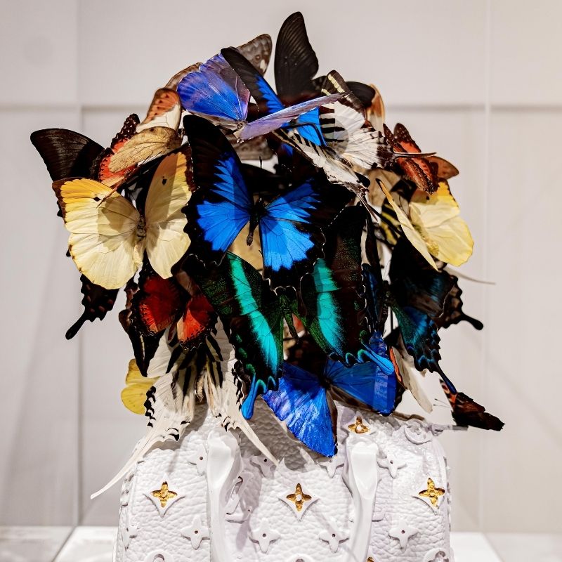 Carolien’s love for fashion fuses together with her passion for taxidermy in these artworks made with moulds of designer bags. The delicate beauty of butterflies versus the haute couture industry. One would think these two couldn’t be further apart.
