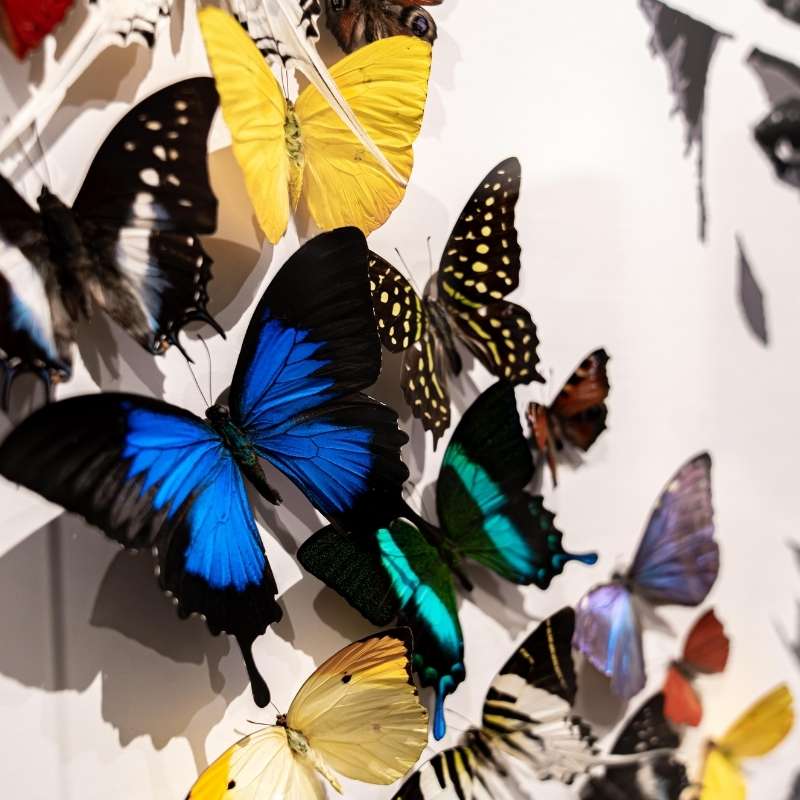 Faces and butterflies have something in common: every one of them is unique. Every face has its own features, just like every butterfly has its own unique markings. The combination of faces and butterflies in these artworks shows and intensify the beauty in both. By strategically placing the butterflies around and on the faces they call forth associations of beautiful thoughts springing from the mind.